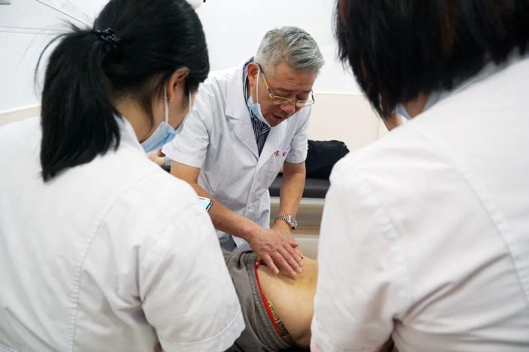 在诊疗同时,一场精彩的“师带徒”课堂亦同步展开,3位主任医师耐心为学生们讲解、实操,手把手进行传授教导。青年医生们则紧紧把握这次难得的学习机会,在老师的指导下巧施银针,为参与义诊的患者解决病痛困扰。